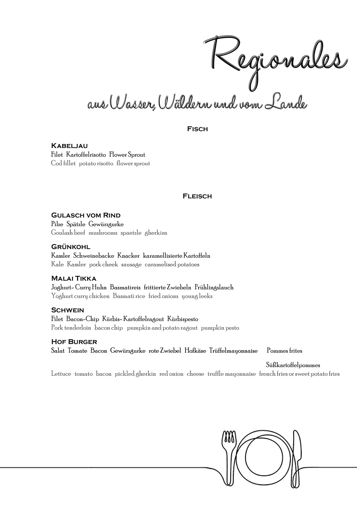 Saisonal aktuelle Speisekarte